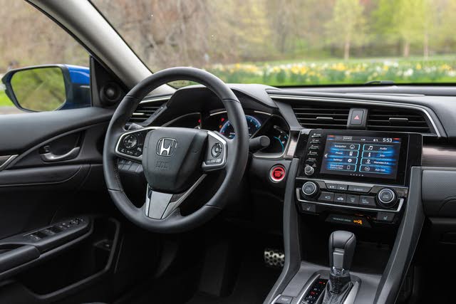 When equipped with a touchscreen, the 2019 Civic adds a volume knob and five shortcut buttons for the infotainment system. The lack of these controls was a serious inconvenience when we last tested the Civic sedan in 2016. Honda also added fan speed buttons below the screen. All of this makes the Civic far easier to use than it was when it relied on only touch-sensitive controls that smudged and washed out in sunlight. Other than that, the interior hasn't changed much, which is a good thing.