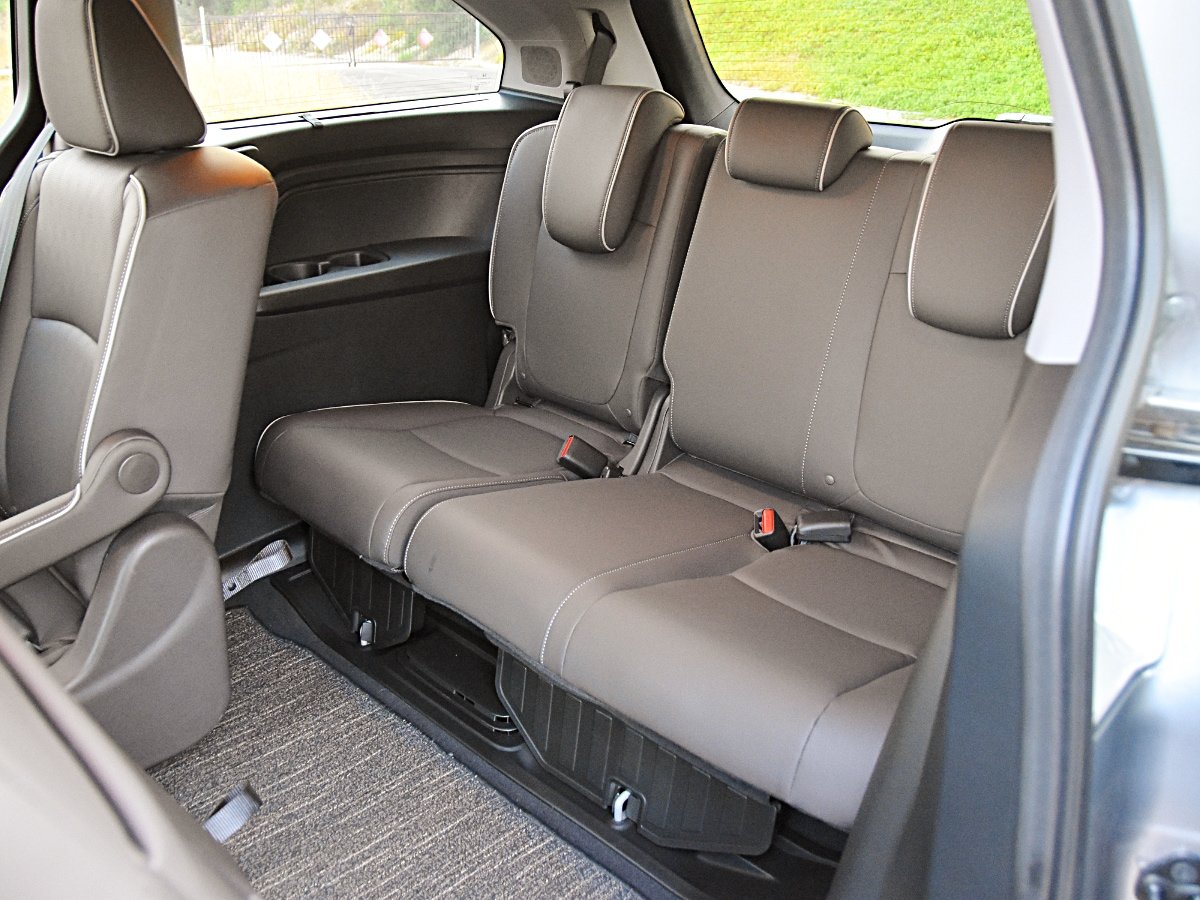 One of the least appealing things about the Odyssey is that you must physically remove the second-row seats and store them someplace in order to use the maximum cargo volume. For 2021, those chairs fold flatter than before, which Honda says increases utility when you decide not to remove them and also helps to make the seats easier to remove. Still, yanking these out of the van, and then reinstalling them, isn’t particularly enjoyable.