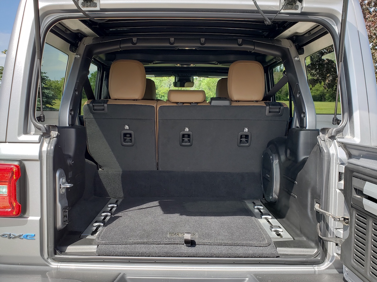 In cargo, there is a bit more of a sacrifice relative to other Wrangler models. All 4xe grades can hold up to 784 litres of cargo with the second-row seats upright and 1,908 litres with them folded. In any other Wrangler, those figures go up to 898 and 2,050 litres respectively. For some drivers, this could be enough to make a difference in the amount of gear that can be hauled around on outdoor adventures.