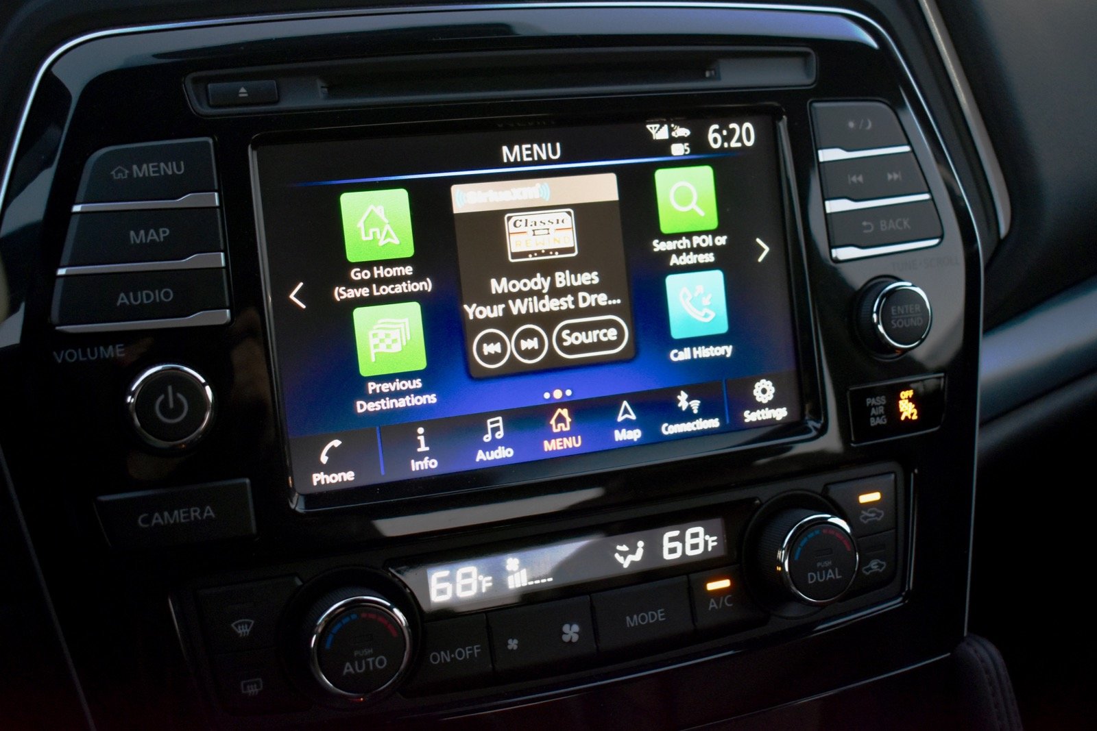 Technology is where the Maxima starts to show its age. While the standard infotainment system covers the bases in terms of feature content, it falls short on functionality.