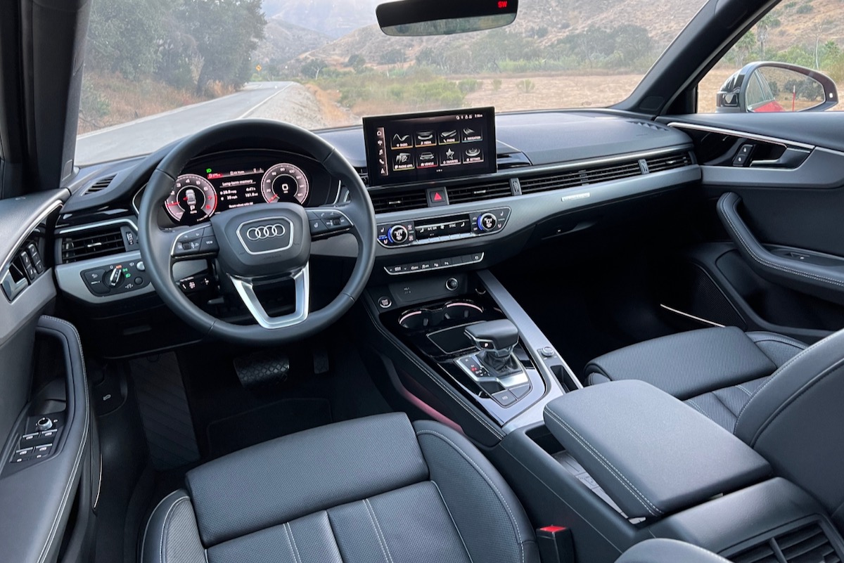 The A4 uses Audi’s efficiency-focused Quattro Ultra AWD system. It powers the front wheels unless the driving situation warrants power transfer to the rear wheels. During enthusiastic mountain driving, we thought we could feel the rear-end digging in as we accelerated out of curves, but it’s not as visceral a sensation as the traditional Quattro system with a sport differential.