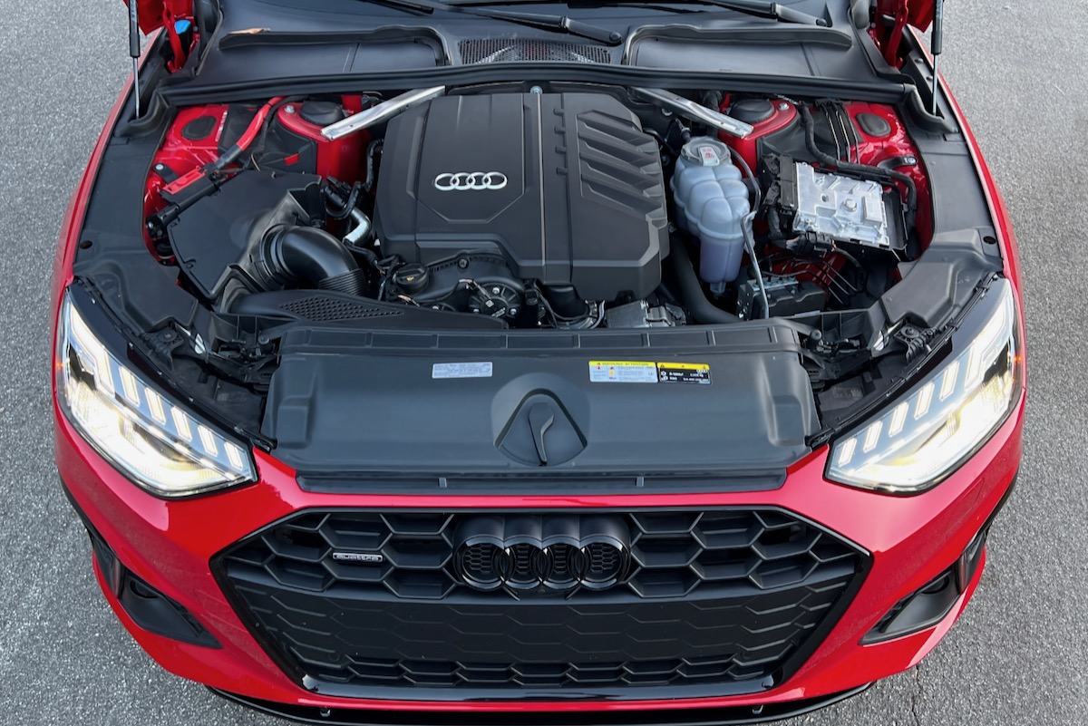Simple, clean, and conservative in appearance, the A4 proved a perfect canvas for the Tango Red paint, Black Edition package detailing, and classic five-arm rotor-design wheels, the latter an example of automotive design perfection that cannot be improved upon. Our A4 looked sensationally good.
