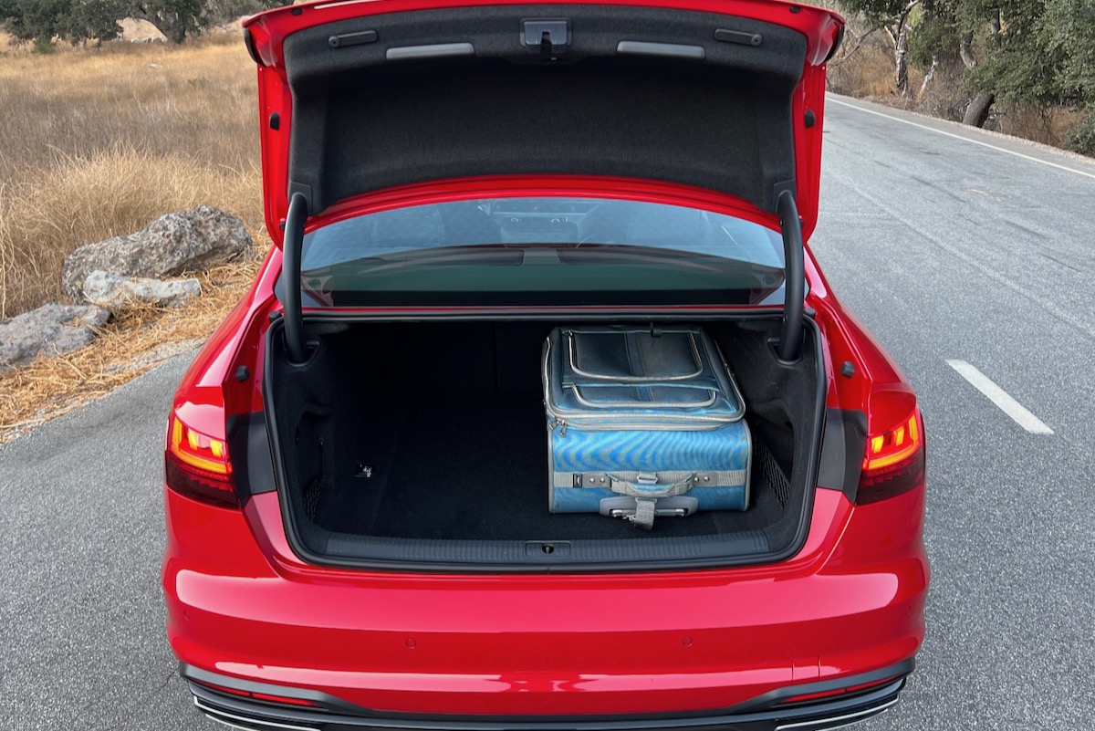 The A4’s 340-litre cargo space is nicely finished and has enclosed hinges so that you won’t crush your luggage. Storage nets reside on either side, and there is plenty of floor space for your things. Audi also supplies grab handles on both sides of the trunk lid, making it easy to swing it shut.