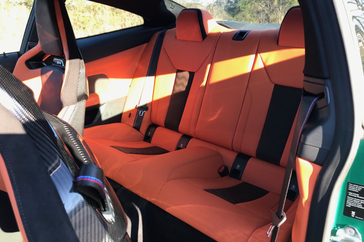 There's plenty of space up front in the M4, with headroom being the lone exception. Surprisingly for a two-door sports coupe, the rear seat isn't a bad place to be, even for adults (those over 5'9" will have to tilt their heads sideways). Of course, buying the convertible would be a quick, albeit expensive, solution to the rear-seat headroom issue.