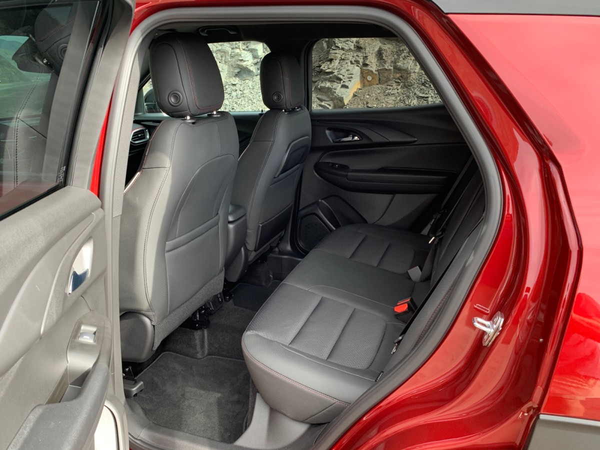 First, there’s plenty of room for four people in this little guy. Our Trailblazer RS test vehicle had a 10-way power-adjustable driver seat, making it easy to find a perfect driving position. Plus, because it sits high, it's really easy to get into and out of a Trailblazer. The front passenger seat lacks a height adjuster but is nevertheless comfortable.