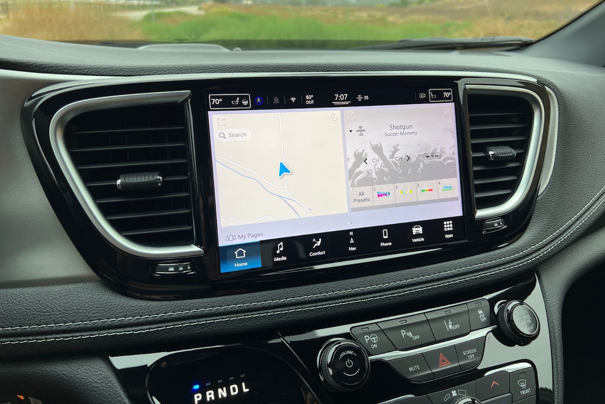 A few years ago, the Chrysler Pacifica was the first Stellantis model to get the company’s latest Uconnect 5 infotainment system. It comes with a 10.1-inch touchscreen display and features appealing graphics, a simple user interface that includes knobs for stereo volume and tuning, and a speedy response to inputs. In addition, you can program five different user profiles with different widgets to create a custom user experience. The screen does accumulate lots of fingerprints in a short span of time, though.