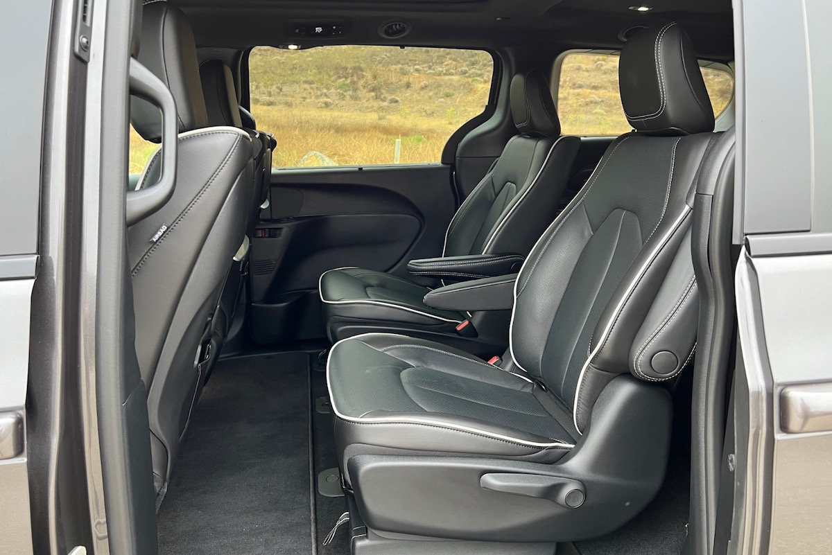 The second-row seats are more comfortable than the narrower Stow n’ Go chairs that you’ll find in a standard Pacifica. They’re wider, with a more comfortable seat cushion angle, and they slide forward and back to adjust for legroom depending on your passenger load. Comparatively, Stow n’ Go seats do none of these things. However, they do collapse into the floor with relative ease, whereas if you want to maximize cargo space in a Pacifica Hybrid, you’re going to need to lift these heavy chairs out of the van and find a place to store them.