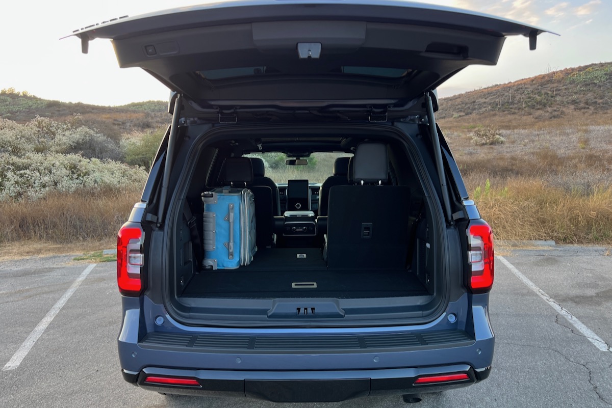 Take our Limited Stealth Edition, for example. With captain’s chairs, it carries four people unless you use the third-row seat to pack in two more passengers (three if they’re smaller adults or kids). But, with the third-row seat in use, the Expedition offers very little cargo space. See our review of the 2021 Expedition to learn what happened when we flew home from a six-person vacation (during which we’d rented a minivan), picked up an Expedition at the airport, and discovered we couldn’t fit all six people and their luggage at the same time.
