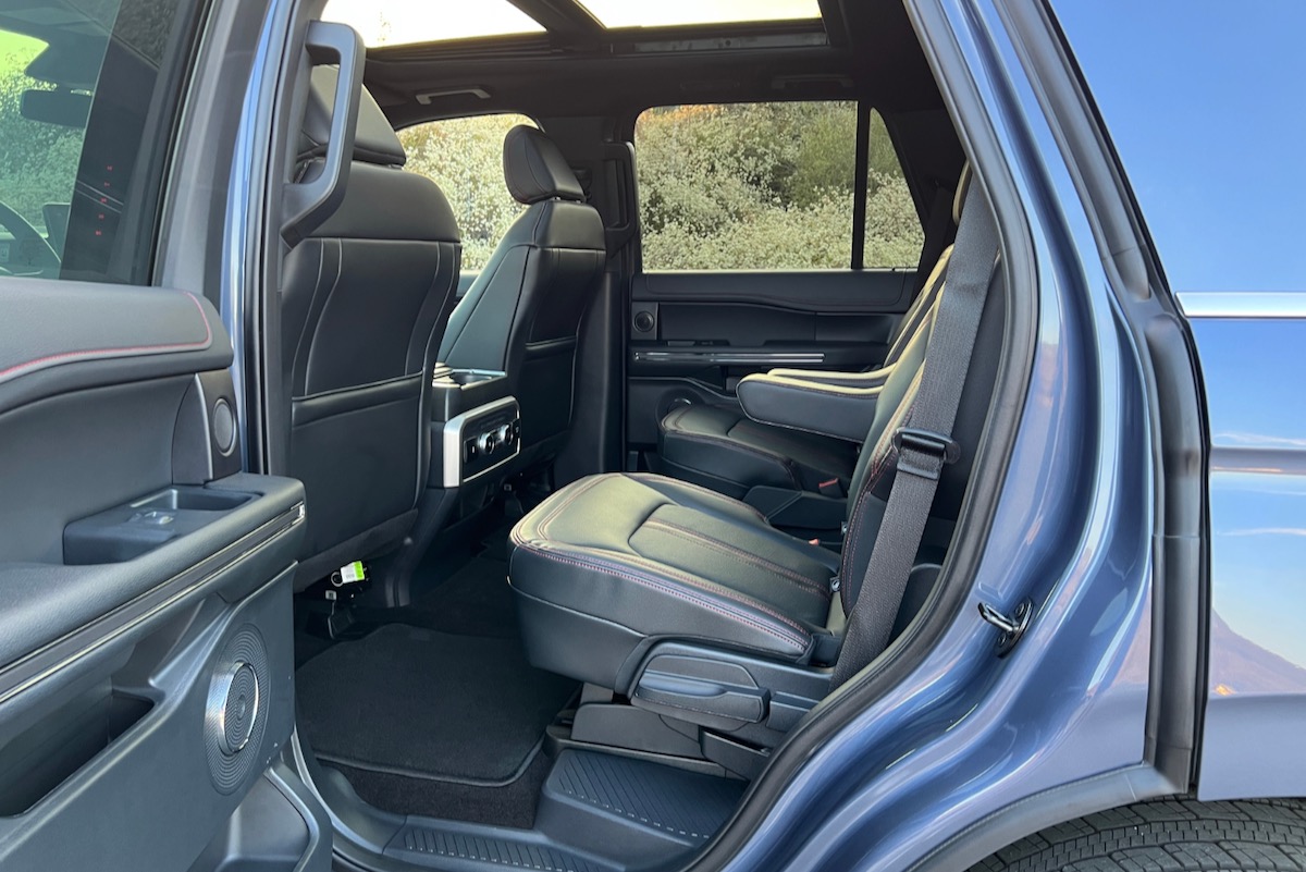 Second-row toe room is a little tight, but otherwise, the Expedition Limited’s heated captain’s chairs are a terrific seat assignment with plenty of legroom. Passengers can use their own climate controls and overhead air vents to make the second row even more comfortable, and they can stash drinks in cupholders mounted to the back of the centre console or the ones embedded into the door panel armrests.