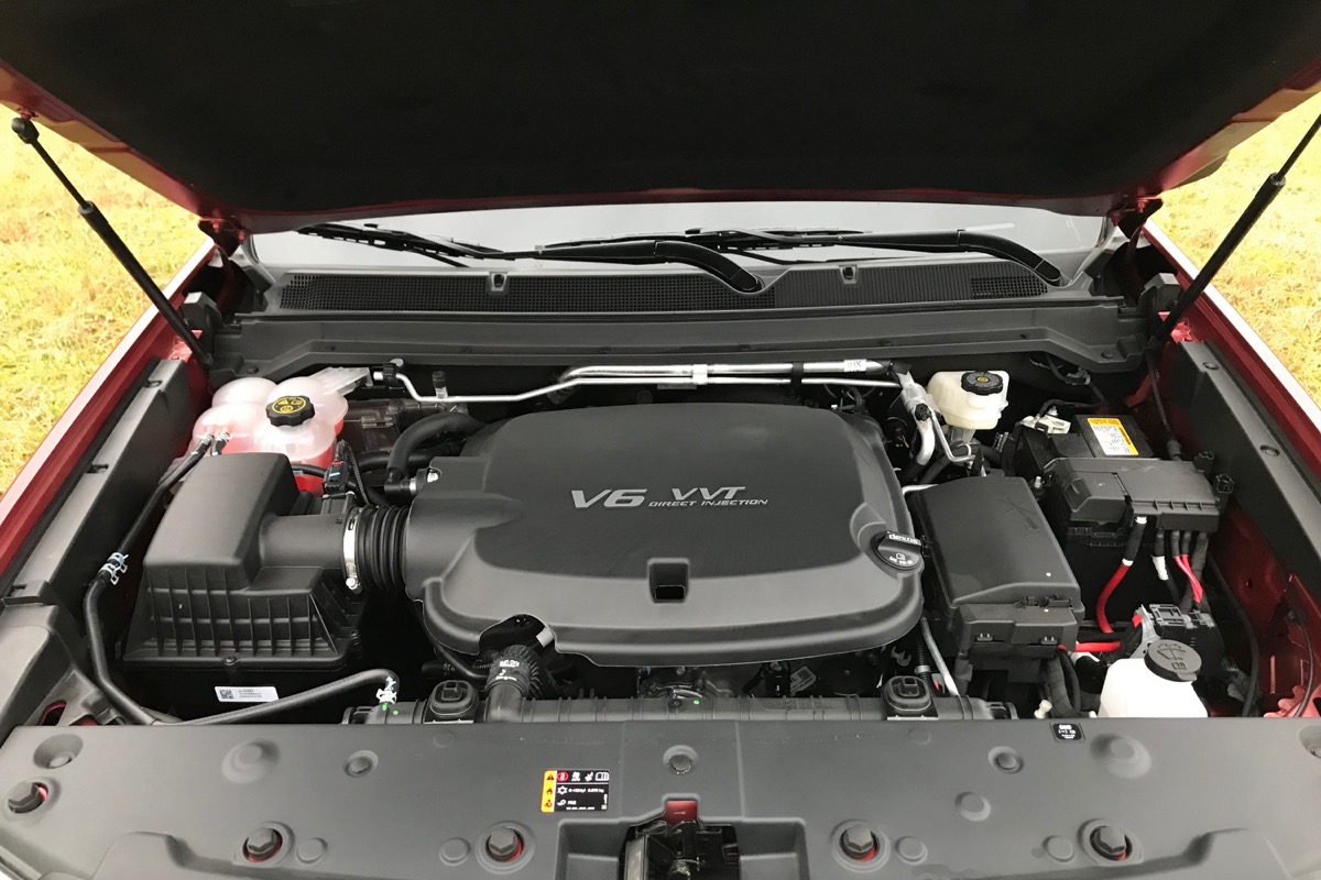 Buyers can choose from a 200-horsepower 2.5-litre four-cylinder, a 308-hp 3.6-litre V6, and a 181-hp 2.8-litre Duramax turbodiesel four-cylinder engine with a stout 369 lb-ft of torque. The latter two engines have a maximum tow rating of 3,175 kilograms (7,000 pounds) when the truck is equipped with the available Trailering package. Rear-wheel drive (RWD) is standard; a four-wheel drive (4WD) drivetrain is available on all trims. A 6-speed automatic transmission is standard with the base four-cylinder and the diesel engine, while the V6 engine works with an 8-speed automatic. While not "heavy duty" by any stretch, the Canyon offers plenty of capability for most buyers.