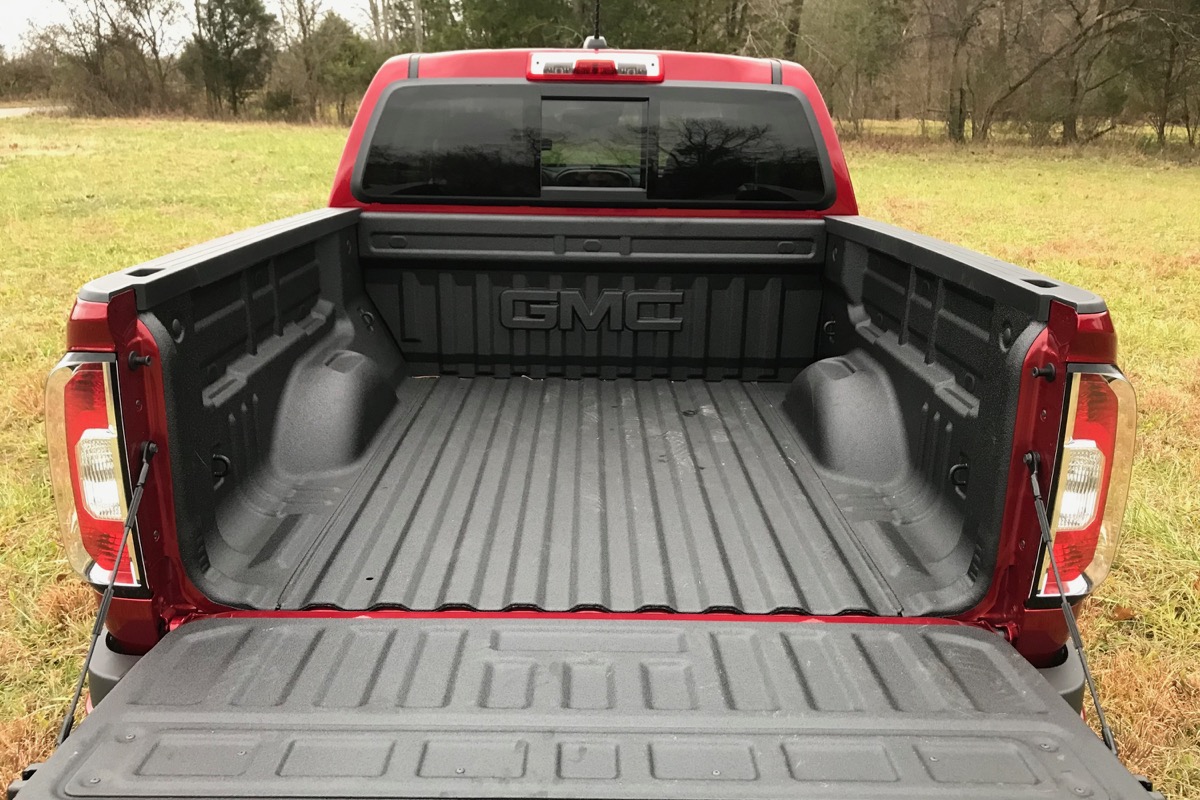 Owing to the AT4's taller ride height, visibility was excellent. The rearview camera and rear park assist make backing the somewhat longish Canyon stress-free. The cargo bed with two-tier loading and 13 tie-down points makes carrying and securing your gear a breeze. Also, the integrated corner step rear bumper makes accessing items in the pickup bed easy.