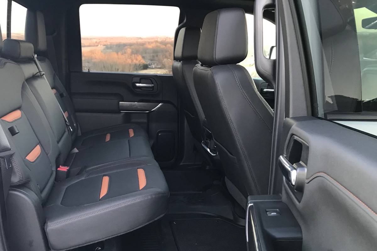 Owing to the fact that it's a big, tall truck—combined with the extra lift courtesy of the AT4 package—it does take some effort to get into the Sierra 2500HD. We found the best approach was to put one foot on the flat side step while grabbing the assist handle mounted on the inside of the A-pillar and hoisting oneself up. Coated with a rough texture similar to what you'd find in the pickup bed, the side assist step on our test truck greatly aided traction, especially when it was raining. Likewise, a corner-step rear bumper makes accessing items in the deep cargo box or the 12 fixed cargo tie-downs easy.