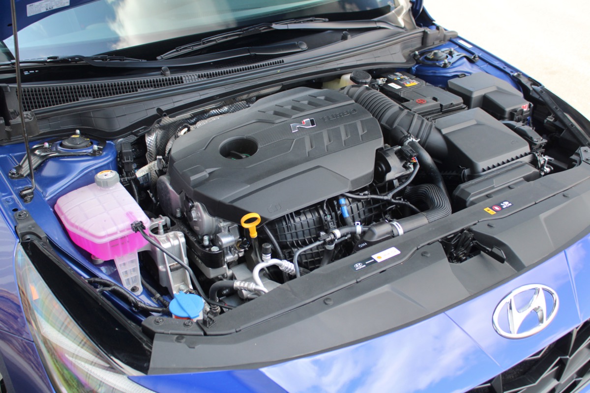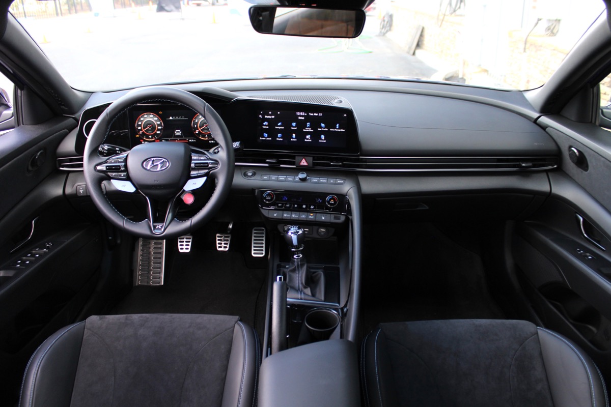 The engineering team enhanced the attributes of the new Elantra platform by further adding features like a rear strut tower brace, an electronic suspension system, reconfigured steering, electronic limited-slip differential, an integrated drive axle, and an overboost system called N Grin Shift (NGS). As goofy as the name sounds, it’s accurate. NGS temporarily will shift into the lowest gear to increase boost pressure for an extra 10 hp for a total of 286 hp. This feature works for 20 seconds and has a 40-second cooldown time. But you’ll be grinning for much, much longer than that.