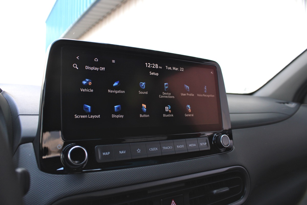 For 2022, the Hyundai Kona upgraded its digital instrument cluster and infotainment display options. The standard infotainment screen increased from 7 inches to 8 inches with the option for a 10.25-inch navigation-infotainment system. The instrument panel comes as a standard 4.2-inches multi-information screen or an optional fully digital 10.25-inch touchscreen. The Kona N is equipped with the larger screens. With responsive sensitivity and clear graphics, the touchscreen was intuitive to use.