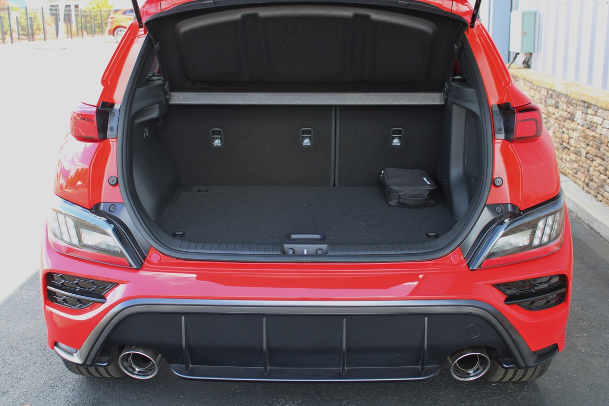 Performance-tuning aside, the Kona N is a standard Kona in every other way. Its total interior volume is 3,208 litres. The 60/40-split rear seats fold flat for up to 1,296 litres of cargo capacity or 544 litres with the rear seats up. Not cavernous by any stretch but definitely plenty enough for a couple of pieces of luggage. If you need to carry more gear or large items, roof rails are standard with cross rails an available accessory.