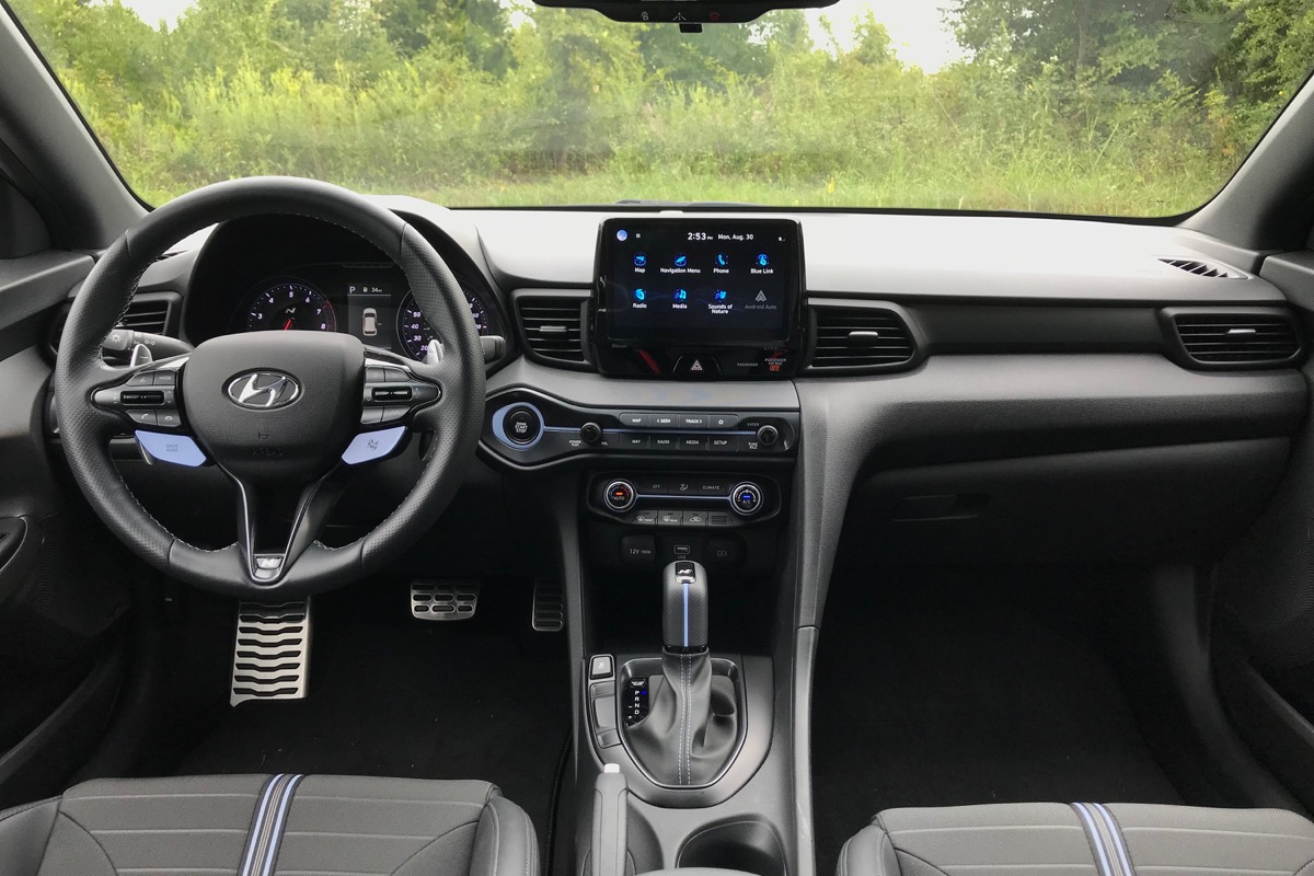 Make no mistake: even with the slick DCT and its various N shift modes, overall, the 2022 Hyundai Veloster N isn't a technical tour de force. Absent are things like adaptive cruise control, a Wi-Fi hotspot, and a surround-view camera system. It offers minimal advanced driving assistance systems, and its infotainment system is nothing to get excited about, looking and operating similar to the ones in most other Hyundai models. It does, however, cover the basics.