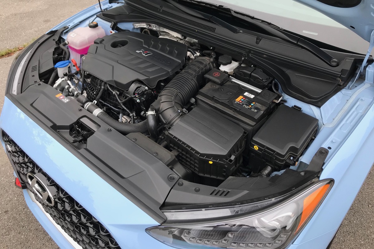 The DCT's wet-clutch design, which debuted on last year's 2021 model, is noteworthy. Unlike a dry setup, a wet design uses oil to improve lubrication and cooling performance in high-torque applications. According to Hyundai, the wet DCT results in "increased thermal endurance and reduced direct parasitic drag on the powertrain." In other words, it can run hotter without power losses.