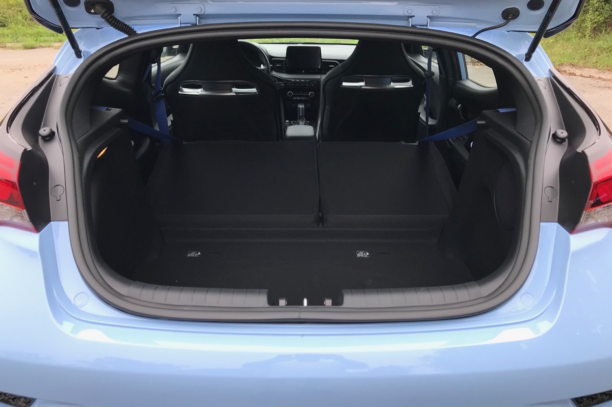 At 565 litres, cargo space is a bit tight, but when folded down, the 60/40 split-fold rear seat allows for 1,260 litres of area to stow luggage and gear. The rigid, removable cargo cover gets in the way a bit when loading taller items, and vertically challenged owners may find it difficult to reach the liftgate handle when it's in the fully open position. A foot-activated motion sensor beneath the rear bumper would be a welcome addition but is not offered on the Veloster N.