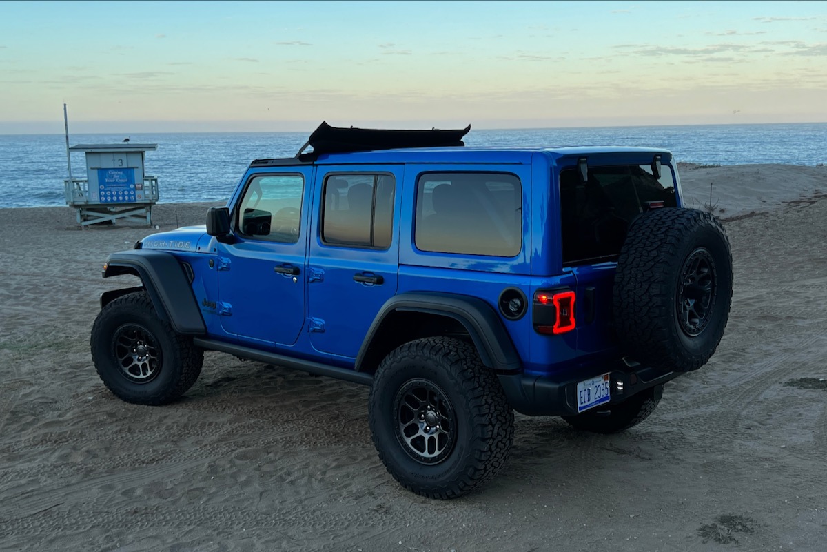 The Hydro Blue paint sparkles brilliantly in direct sunlight. The Sunrider Fliptop replaces the individual removable roof panels over the front seats and looks a little odd whether it’s open or closed. But it sure makes life easier when you want to open the Jeep up a little bit while you’re sitting at a traffic light. Also, with this solution, you need not worry about storing the panels, dropping and damaging them, or scratching them, etc.