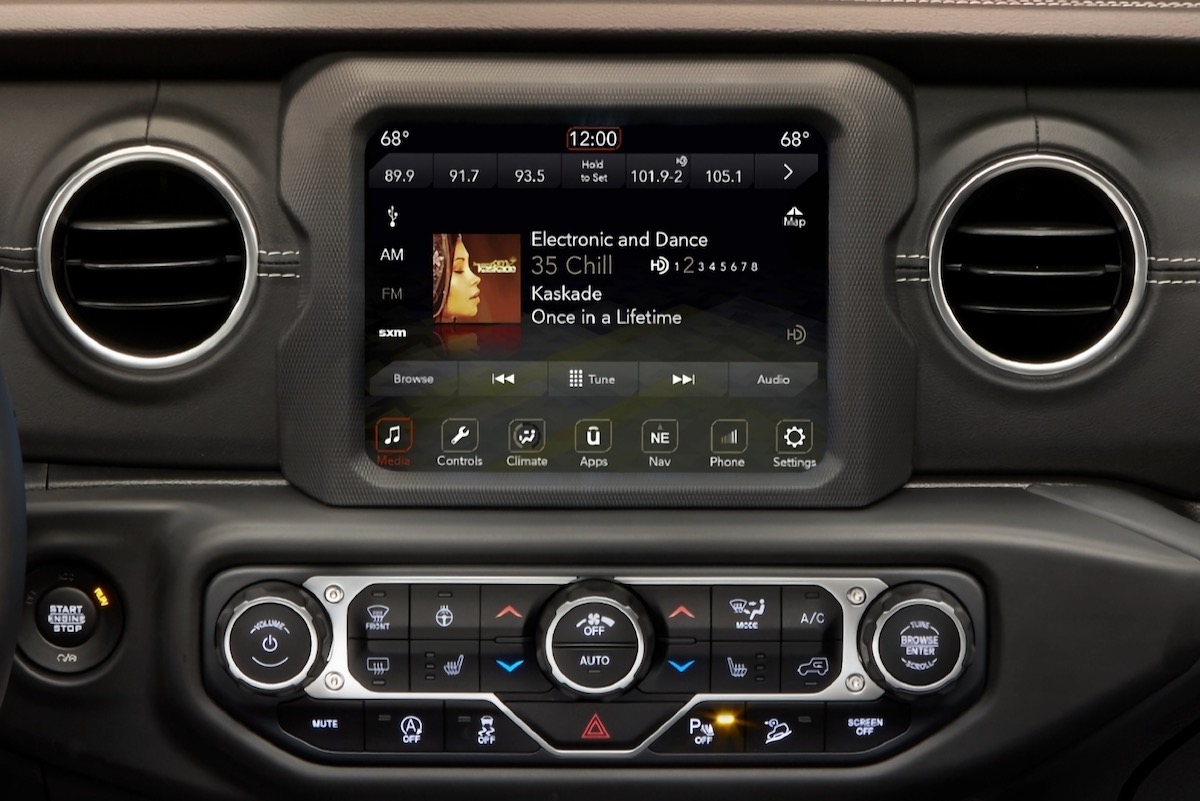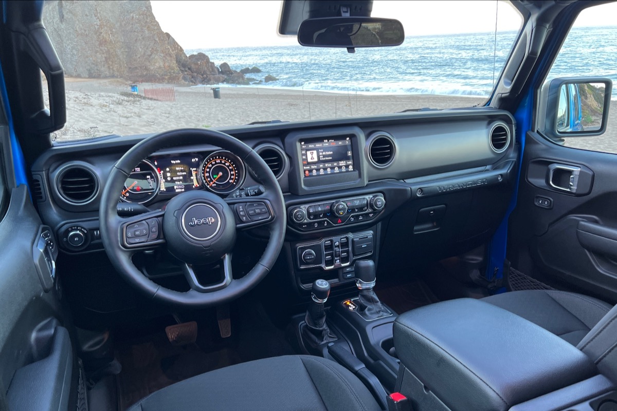 Our Wrangler wasn’t totally devoid of tech. Fitted options included remote engine starting, satellite radio, a passive keyless entry system, and single-zone automatic climate control with the new air filtration system. The Cold Weather Group equipped our test vehicle with heated front seats and a heated steering wheel, which can extend the open-air driving season a little bit.