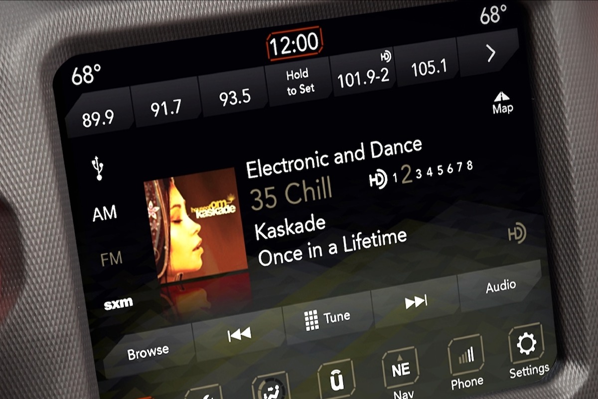 Because our tester is based on Sport S trim and did not have the optional Uconnect infotainment system with a larger 8.4-inch touchscreen (shown here), it had relatively basic infotainment technology.