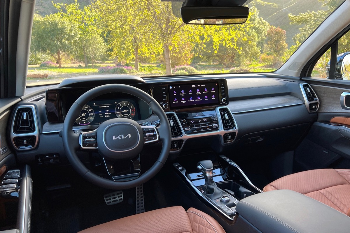 No matter which version of the 2022 Kia Sorento you choose, you’re going to get an SUV that exudes quality. That descriptor applies to the leather upholstery and simulated wood trim on the dashboard of our test vehicle, but also extends to all Sorentos through how the door releases operate and the transmission shifter feels in your hand with each and every use.