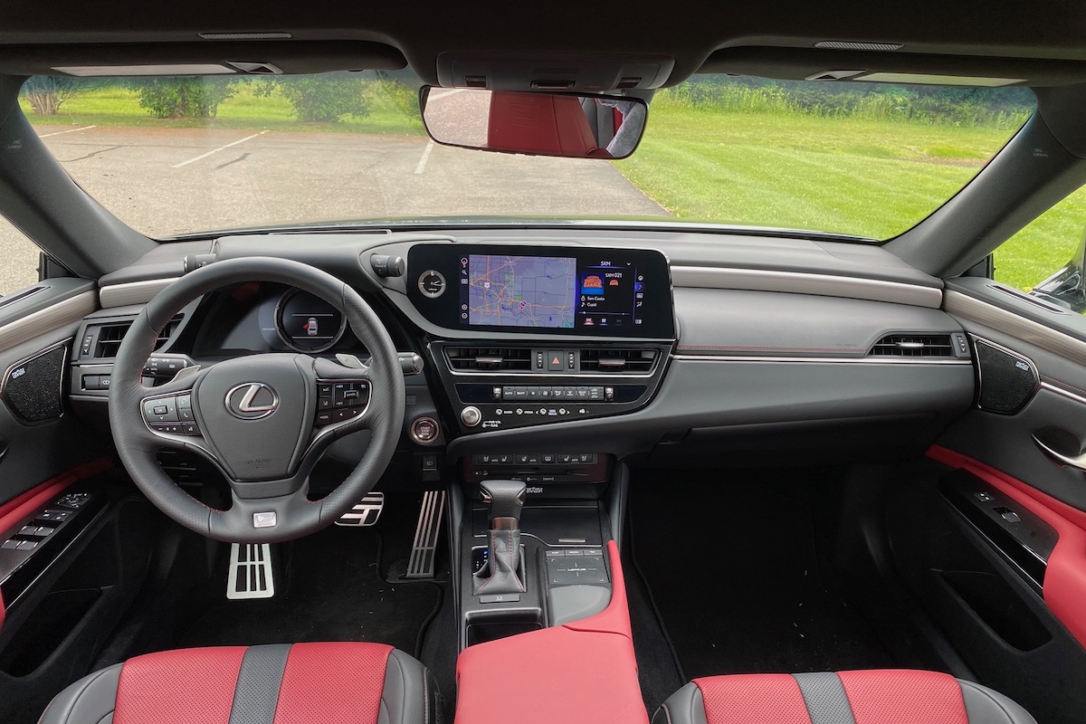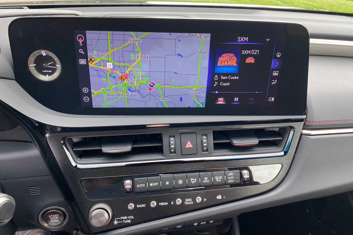 The base infotainment system in the ES includes an 8-inch touchscreen with Apple CarPlay and Android Auto compatibility. Also standard are a 10-speaker Pioneer sound system with USB audio input connections, Bluetooth hands-free phone and streaming audio, a CD player, HD radio, and SiriusXM satellite radio with a three-month trial subscription. Upper trim levels get an upgrade to a 12.3-inch touchscreen (available on the ES 250), Mark Levinson 17-speaker, 1,800-watt surround sound audio, and navigation. The ES still uses Lexus’s centre console touchpad interface for the infotainment system, much better than the previous fixed mouse setup, but still fidgety and challenging to use on rough roads.