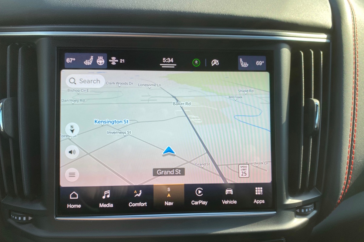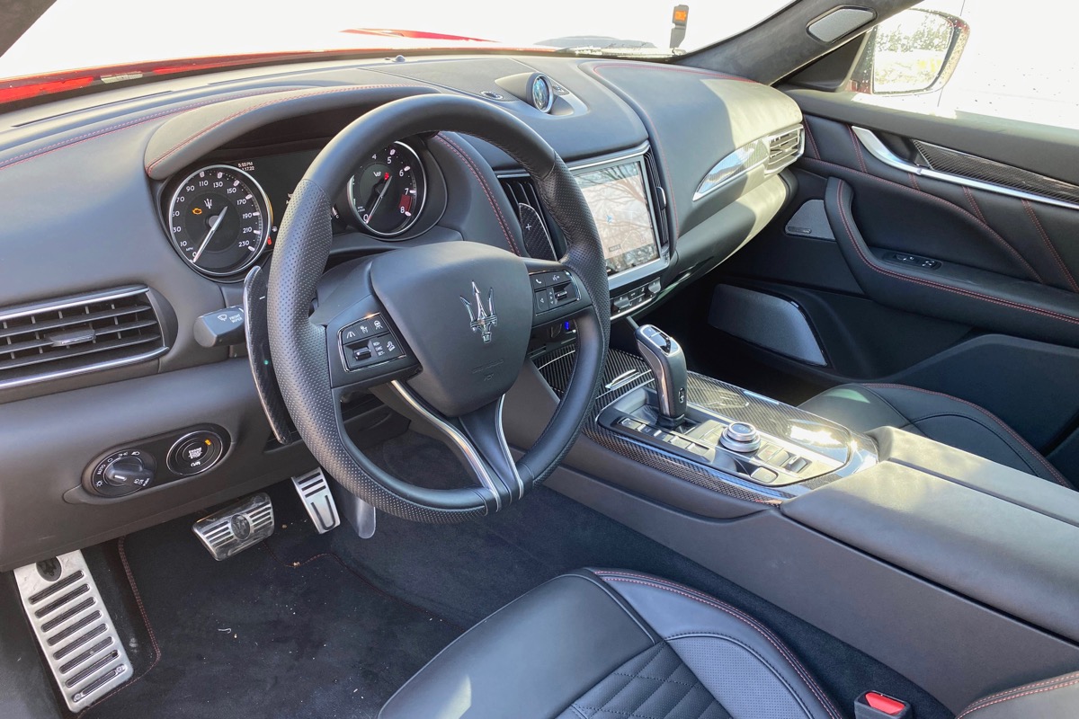 Sometimes it’s helpful to be part of a big family of brands. Maserati, a low-volume manufacturer, is owned by Stellantis, a gigantic company with multiple international automotive brands, including Fiat, Chrysler, Dodge, Ferrari, and others. As part of this big family, Maserati can punch above its weight in technology, sharing equipment, software, and development with its relatives. So, the Levante gets expected features like Bluetooth, Apple CarPlay, and Android Auto.