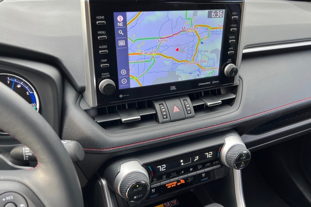 While the voice recognition system doesn’t control the RAV4 Prime’s climate control system, it did accurately perceive and respond to all of our usual test commands. However, in response to a request for directions to the nearest hospital, the results were cluttered with health-related businesses in addition to hospitals.