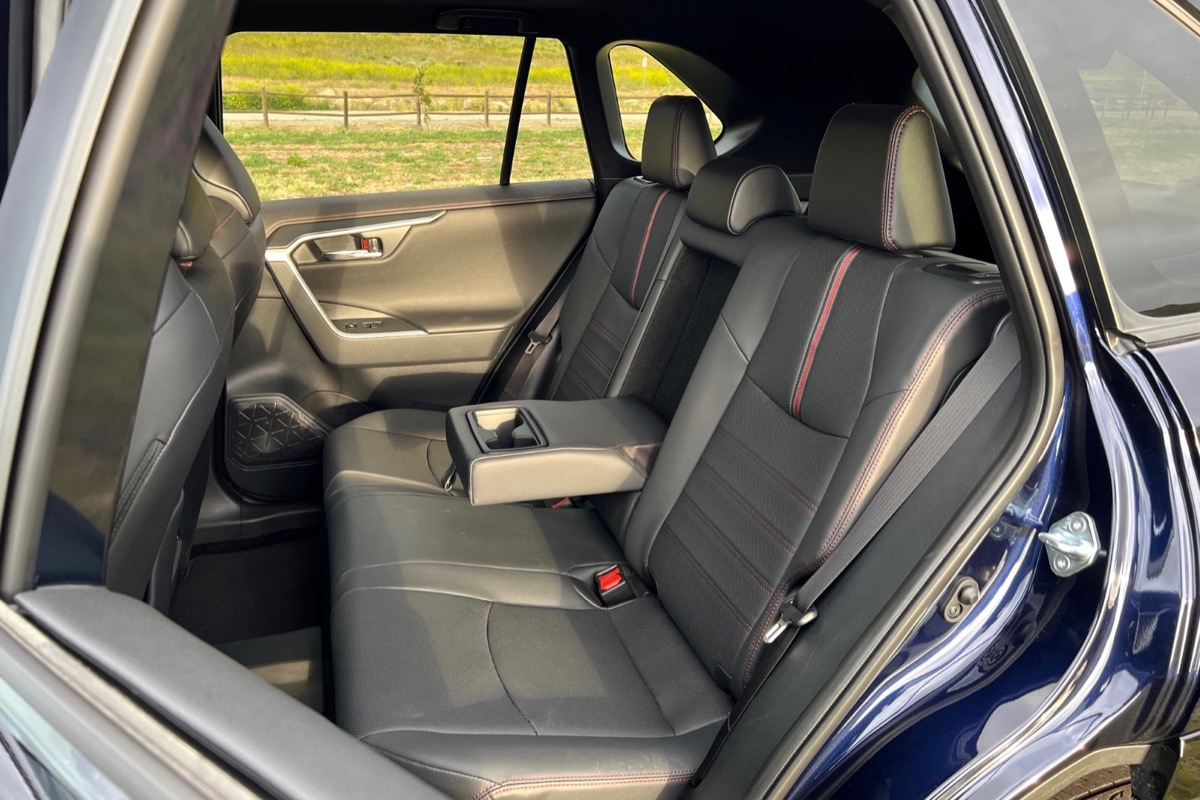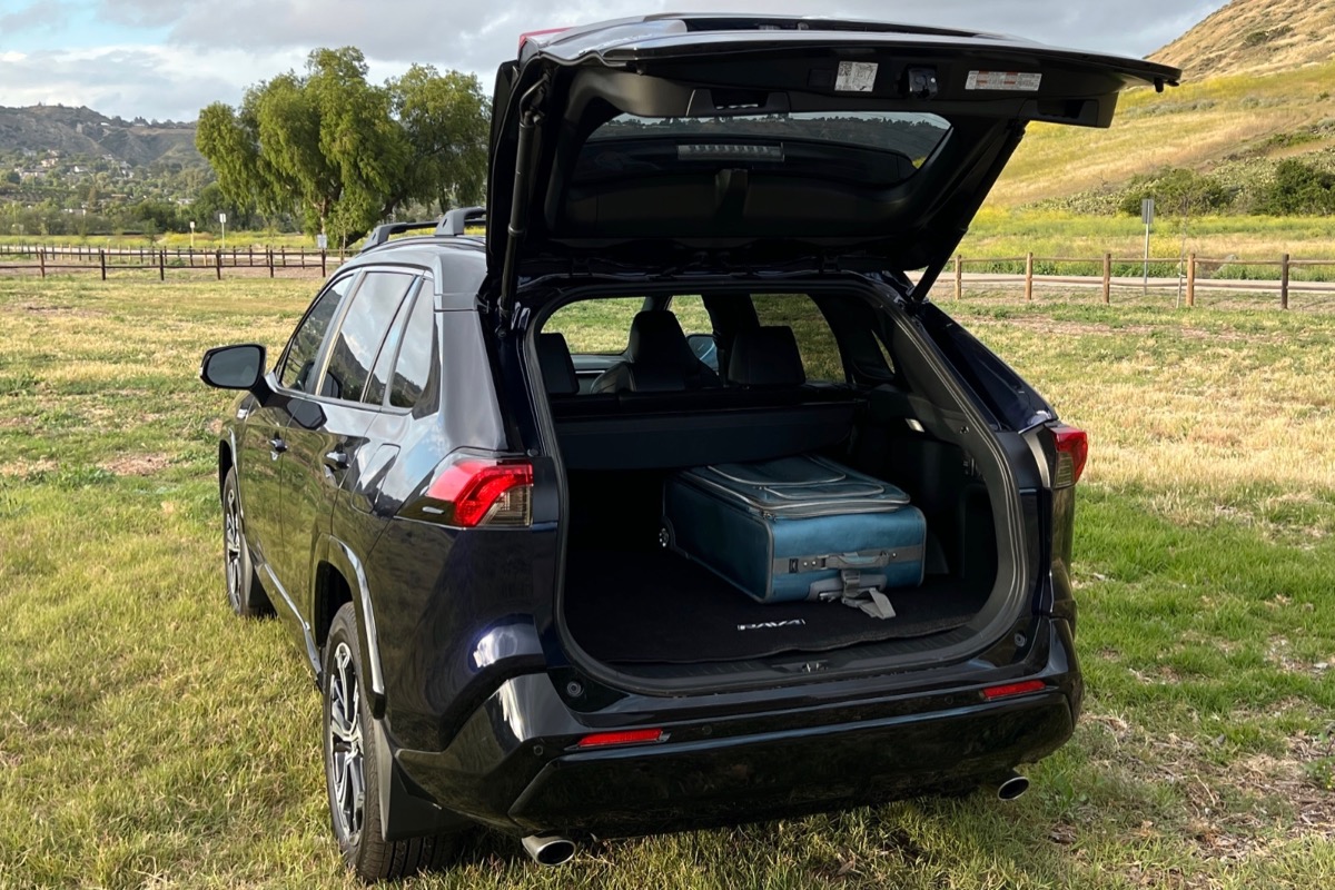 The RAV4 Prime’s back seat offers plenty of legroom, headroom, and foot room for adults. Plus, the rear cushion is large and supportive if perhaps mounted a little too low for optimal comfort. The rear doors open wide, making it easy to get into and out of the SUV, and the RAV4 Prime has rear air conditioning vents and two USB charging ports for back-seat passengers.