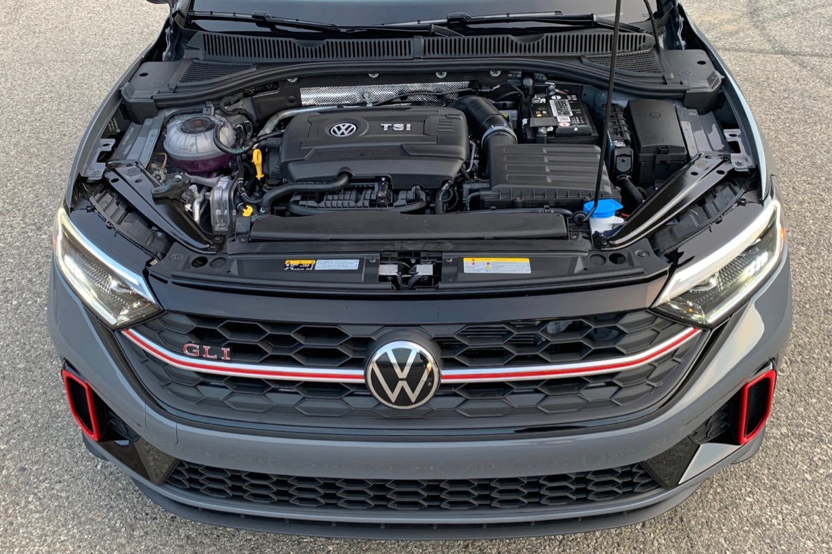 A sophisticated small sport sedan, the Jetta GLI behaves in a decidedly Germanic manner. The powertrain is excellent, supplying effortlessly swift acceleration, and the engine revs so silently and smoothly that it's easy to forget to upshift the six-speed manual transmission. On multiple occasions during highway driving, we ran the car in fourth gear instead of sixth gear for long stretches at a time, finally realizing the mistake thanks to a subtle notification on the standard 10.25-inch Digital Cockpit instrumentation panel.
