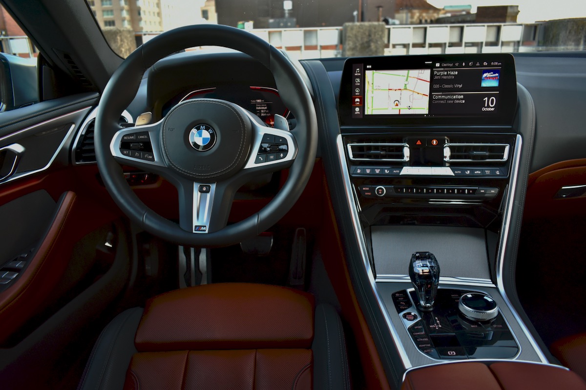 The 8 Series does its best to hide its bulk when it comes to handling. From the quickness of the steering (aided by the optional Integral Active Steering rear-axle steer system) to the effectiveness of the M Sport brakes, our tester had the reflexes and caffeinated character of a much smaller car. It was more fun than expected in the corners, while still providing a comfortable ride for more mundane situations. The cabin was so quiet that the most prominent sound was the fan for the ventilated seats.