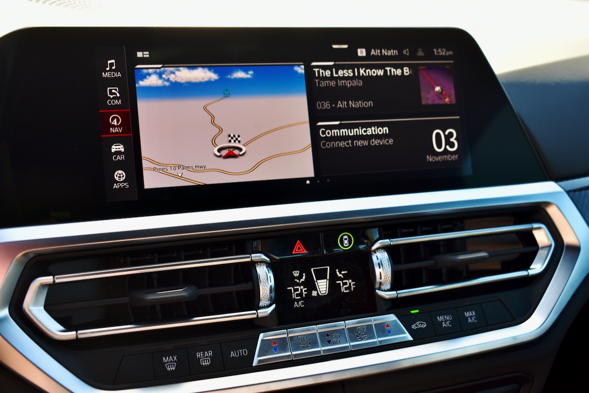 It may focus on performance, but the M4 gets a sophisticated infotainment system like other BMW models. A 12.3-inch digital instrument cluster and 10.25-inch touchscreen are standard, along with Bluetooth, wireless Apple CarPlay/Android Auto connectivity, a head-up display, and BMW iDrive 7.0 operating system.