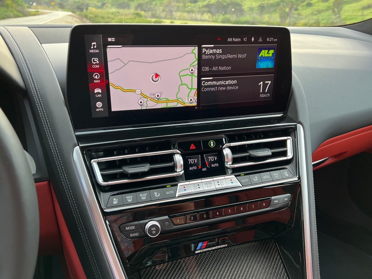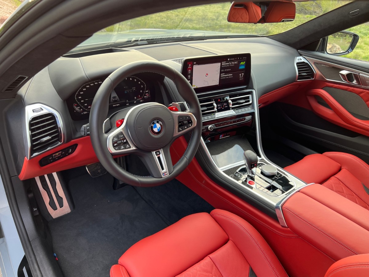 If you’re familiar with modern BMWs, you’ll feel right at home inside the M8. The controls, displays, and layout are instantly familiar, except for the new 12.3-inch touchscreen infotainment display. However, the larger screen is nicely integrated with the dashboard and doesn’t block your view. If we have any quibbles with the M8’s cabin, we’ll say the electronic transmission shifter is a little fussy.