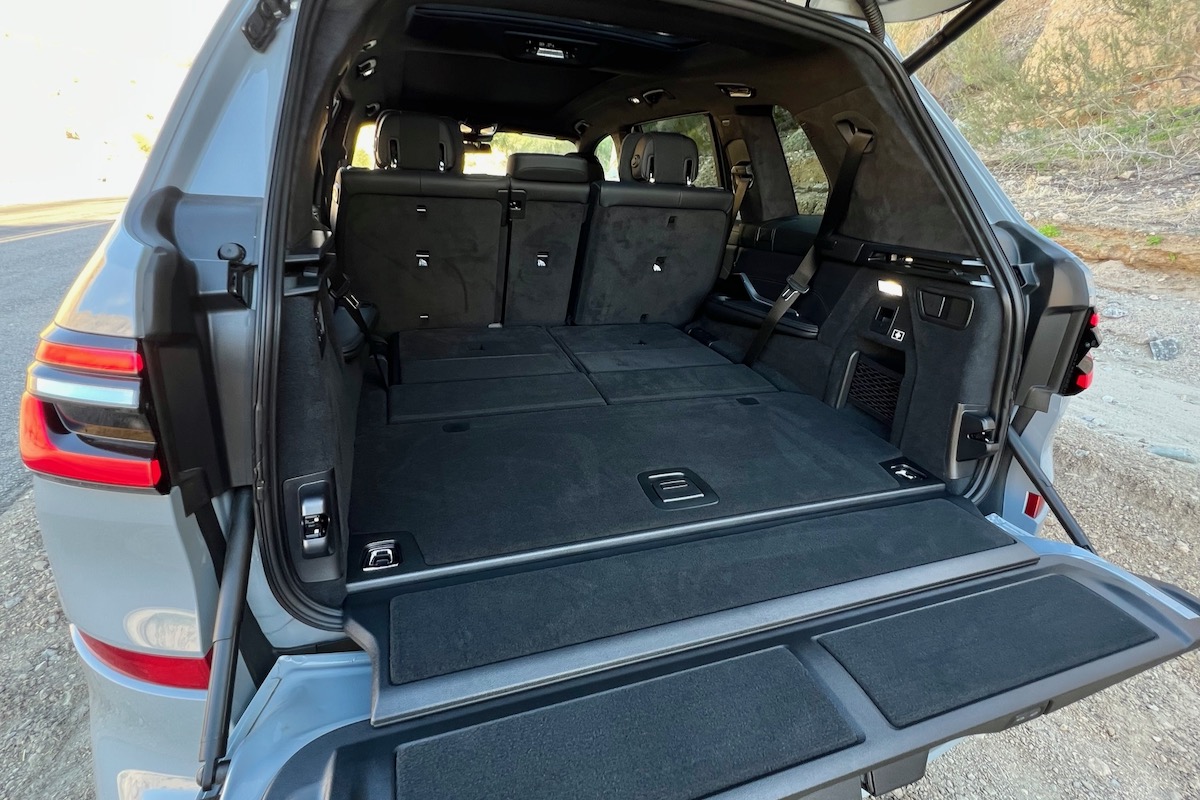 Behind the third row, you have 362 litres of cargo space, which should be enough for several suitcases or a couple of large golf bags. Folding the rearmost seats can be done with the tap of a button; the seatbacks slowly pivot flat with the cargo floor. The X7 also has a helpful split tailgate, with a lower section that stays in place to keep items from rolling out if you're parked on an incline and drops down flat for a convenient bench for tailgating or to assist when loading bulky cargo. There is also a button to lower the air suspension to further reduce loading effort. With the third row stowed, cargo capacity jumps to 1,376 litres. Folding the middle seats is just as easy with adjoining buttons and expands capacity to its 2,560-litre maximum when all rear seats are folded.