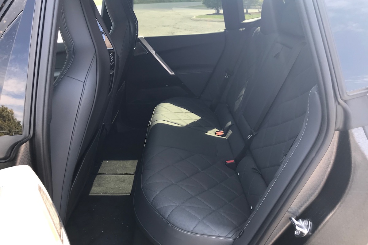 Rear-seat space and comfort in the iX were also top-notch. The fold-down armrest can accommodate two cups, and the front seatbacks each have two integrated USB-C ports. There's no optional third row of seats in the iX like in the Tesla Model X, but we'd argue that nobody would want to sit back there even if it was possible. After all, there are precious few midsize crossover SUVs with a third row large enough to accommodate two extra passengers in comfort. You can lower the rear seatbacks by pushing a button in the cargo area, but, oddly, you have to raise them manually.