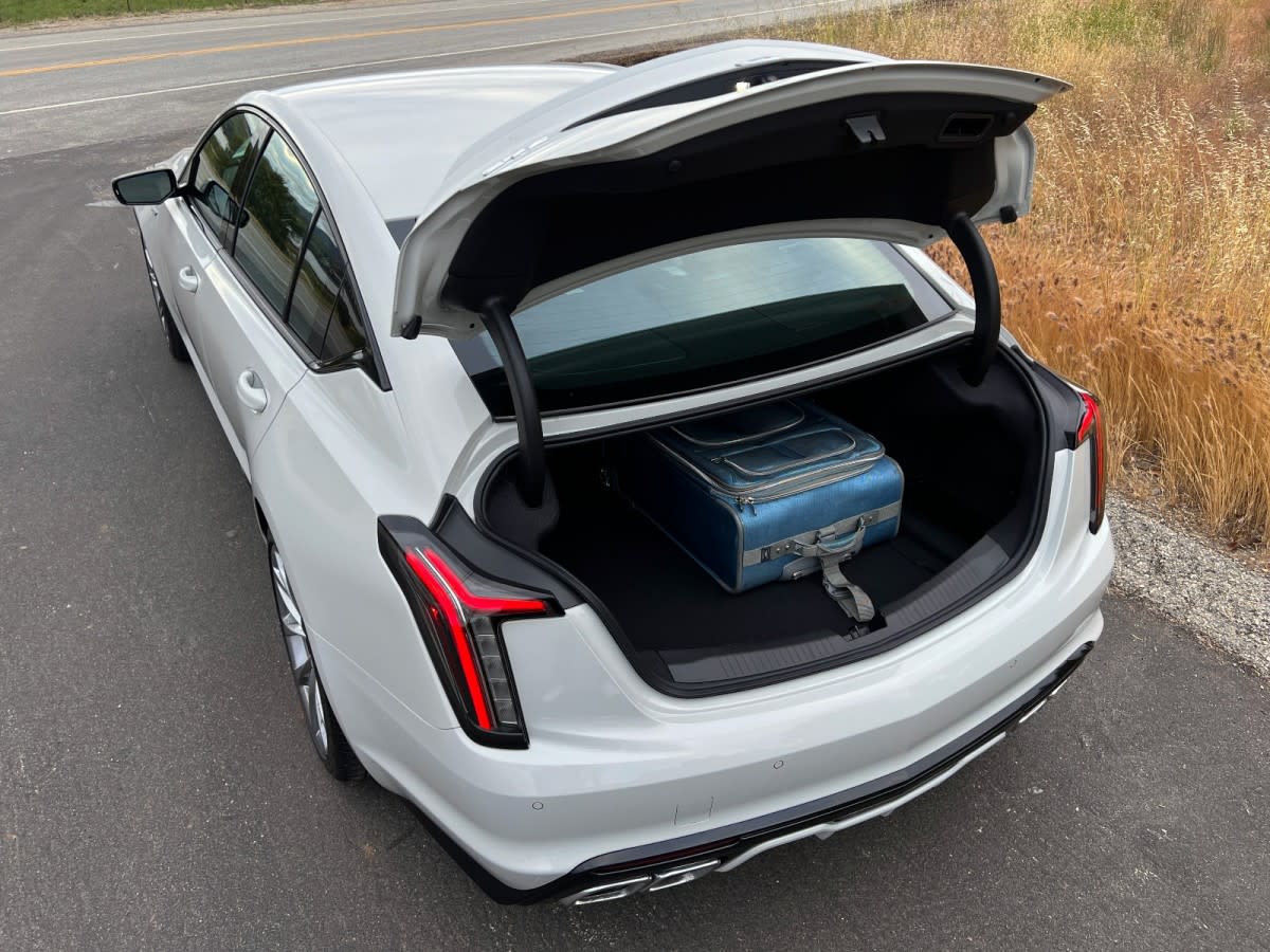 Around the back, the CT5-V offers an optional hands-free power trunk lid. Open it, and prepare for disappointment because the CT5-V supplies just 337 litres of cargo space. The trunk is small and narrow, so packing for a road trip is akin to tackling a Jenga puzzle.