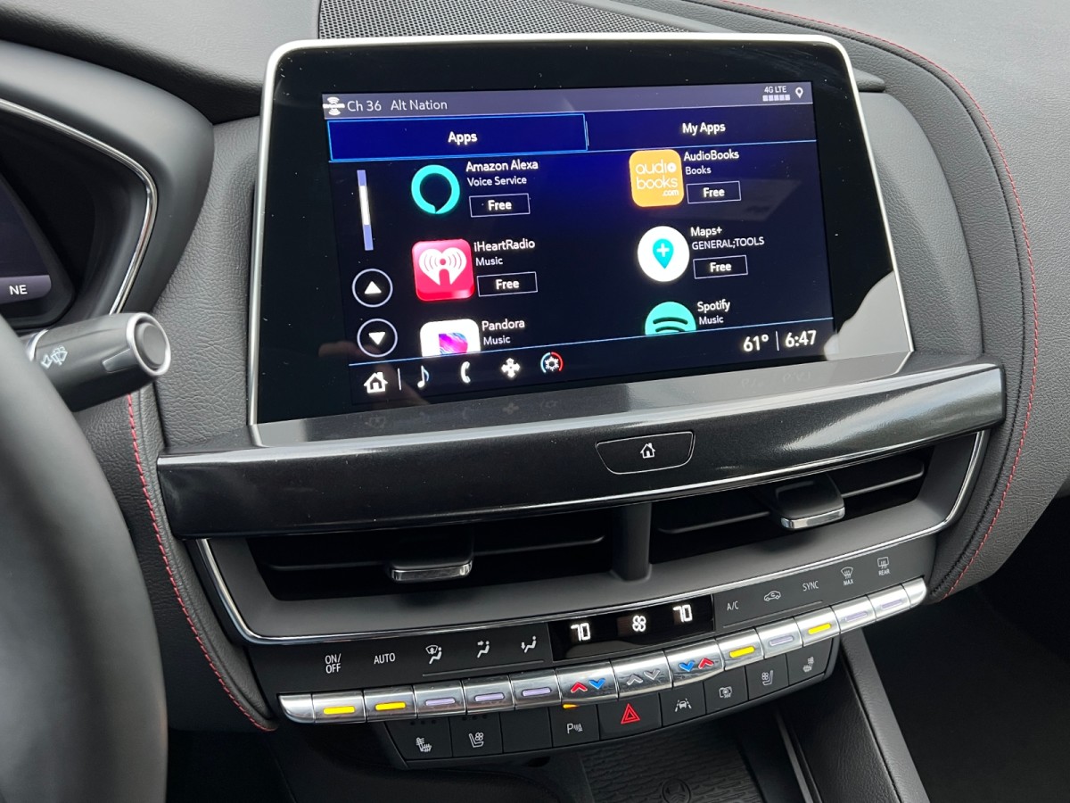 Connected in-car apps: Google POIs · Infotainment: Cadillac Infotainment System · Infotainment screen size: 10 in. · Smartphone integration: wireless Apple CarPlay