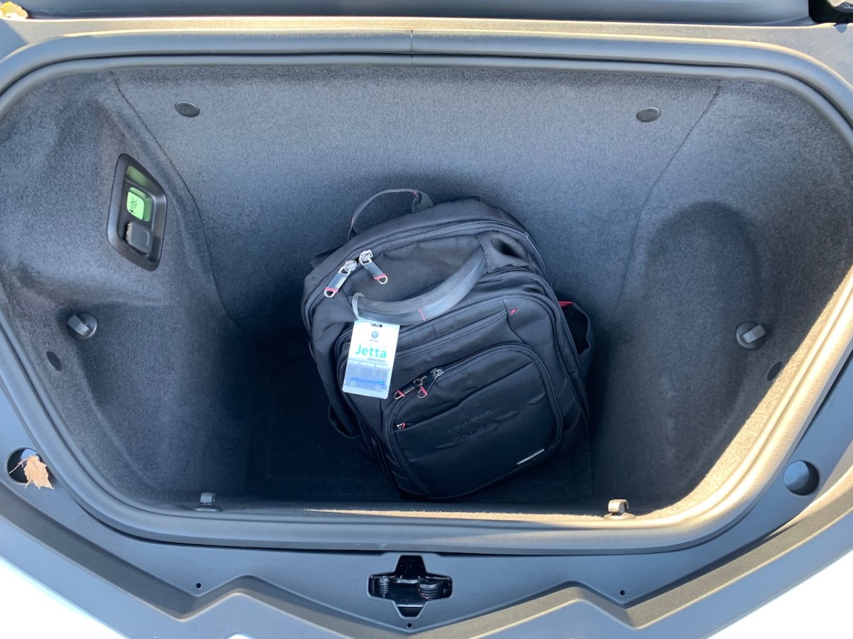 Speaking of versatility, the Corvette offers front and rear trunks for your gear. The trunk behind the engine spans the width of the car and is large enough for at least one golf bag. The front trunk, or “frunk,” holds at least one weekend bag and a backpack. Together, these make the Corvette actually livable for a long road trip. Unlike many exotic cars, you can pack multiple bags, and it has a combined cargo space of 356 litres. The rear trunk lid has a power soft-close function so that you don’t need to slam it.