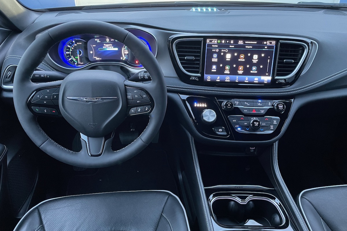Insert sad-trombone sound here: other items from the standard Pacifica not available on the plug-in hybrid are the built-in vacuum cleaner and heated second row seats.