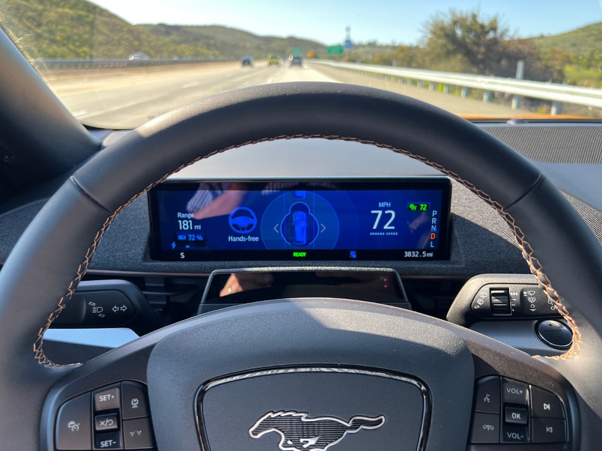 First, the Mach-E needs a head-up display. While audible alerts accompany some messages regarding BlueCruise, not all do. For example, when the tech detects an opportunity to change lanes and resume your pre-set travel speed, a message briefly shows on the digital instrumentation. But if you’re not looking there, you won’t see it.