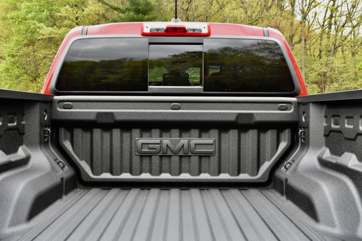 Minimal secure storage space is a drawback of pickups, and something GMC aims to address with the new-for-2023 MultiStow tailgate, which houses a waterproof storage compartment in the tailgate. The compartment is long and narrow, limiting its actual utility, but you won't find anything similar in a Ford Ranger, Nissan Frontier, or Toyota Tacoma.
