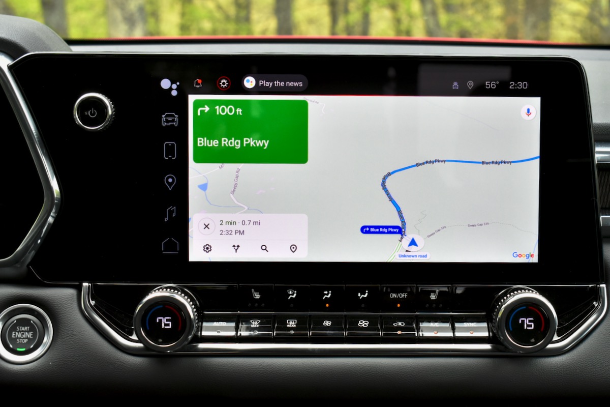 Fans of old-school, no-frills trucks need not apply, but tech-savvy buyers will find a lot to like. The central touchscreen's graphics are gorgeous, particularly the images displayed for the different drive modes, which are desktop-display worthy. We also appreciate that menus default to a dark background, which is a little less jarring than the white background of most other infotainment systems. Google stuff still appears the way it does on your phone, however.