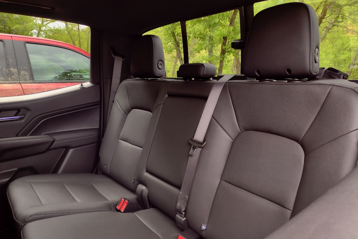 Despite a wheelbase stretch, the crew cab's dimensions are fairly close to the previous-generation Canyon's, but that does yield a fair amount of interior space for a midsize truck. The Canyon has more first-row legroom than any other midsize model except the dimensionally identical Colorado. Second-row legroom is only surpassed by the Honda Ridgeline and Jeep Gladiator, both of which are based on SUV platforms. Headroom in both rows is also comparable to other conventional midsize pickups.
