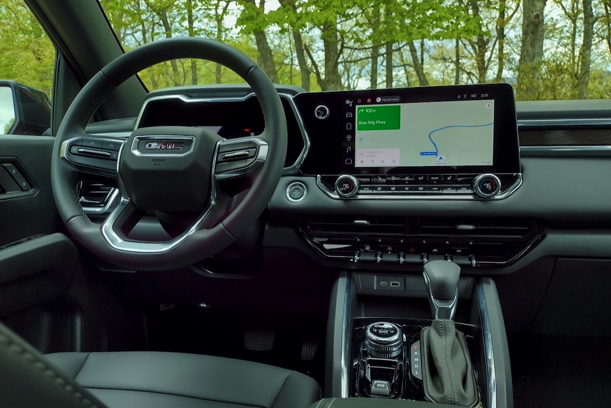 The infotainment system features the same Google Built-In functionality as the full-size GMC Sierra 1500 and GMC Hummer EV. It defaults to Google apps for main functions, with Google Maps serving as the navigation system, for example, so Android users get a similar experience without even having to connect their phones. As noted above, Apple CarPlay is still included, meaning the Canyon will likely be one of the last GM vehicles on sale with that feature as the automaker shifts to an all-Google infotainment strategy for future EVs.