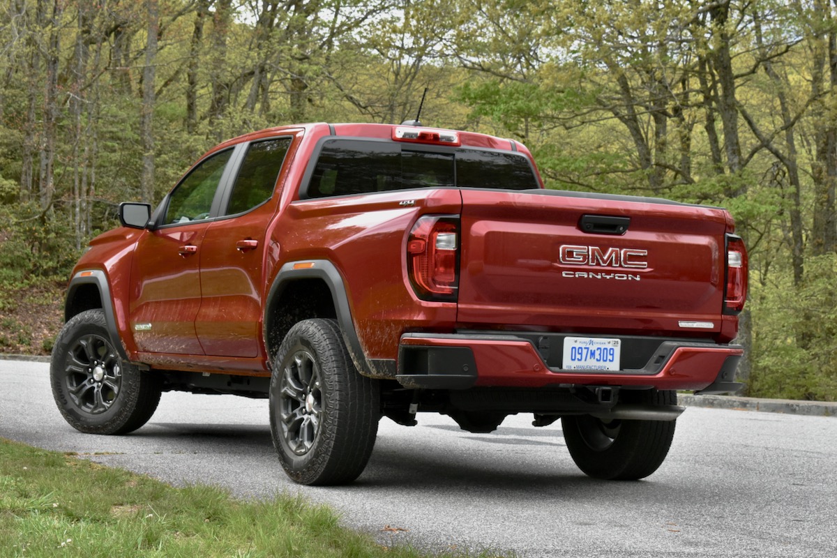 The Canyon delivers a good balance of on-road livability and off-road capability. We started out in Elevation and AT4 models, both of which boasted quiet cabs (the loudest thing we heard some turbo whistle) and a feeling of solidity rare in body-on-frame vehicles. Steering was slow and imprecise, but not unusually so for a pickup, and the engine and transmission worked well together. Acceleration while unloaded was more than adequate, but we didn't have a chance to test the Canyon with a payload or trailer.