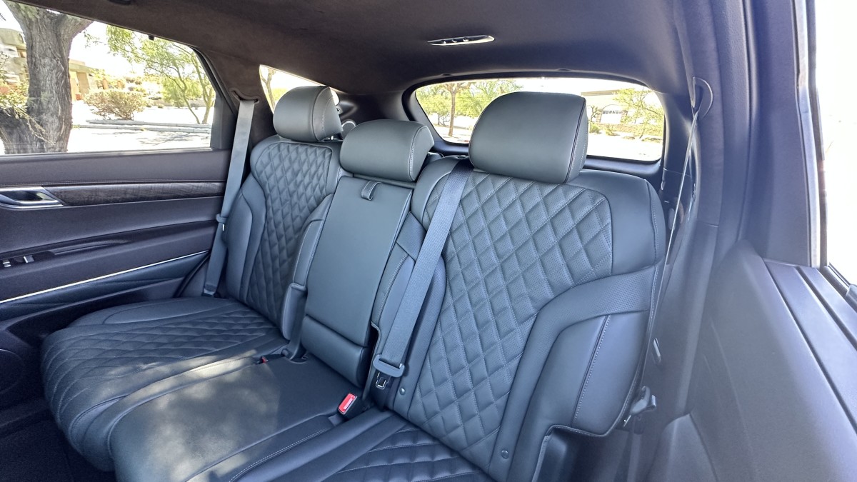 Our one quibble is with the 14.5-inch infotainment screen that looks to be kind of plunked on top of the dash. It would be nice if it were built in just a bit more, but it’s a small annoyance. This interior is spacious and luxurious, and it’s a very nice place to spend some time.