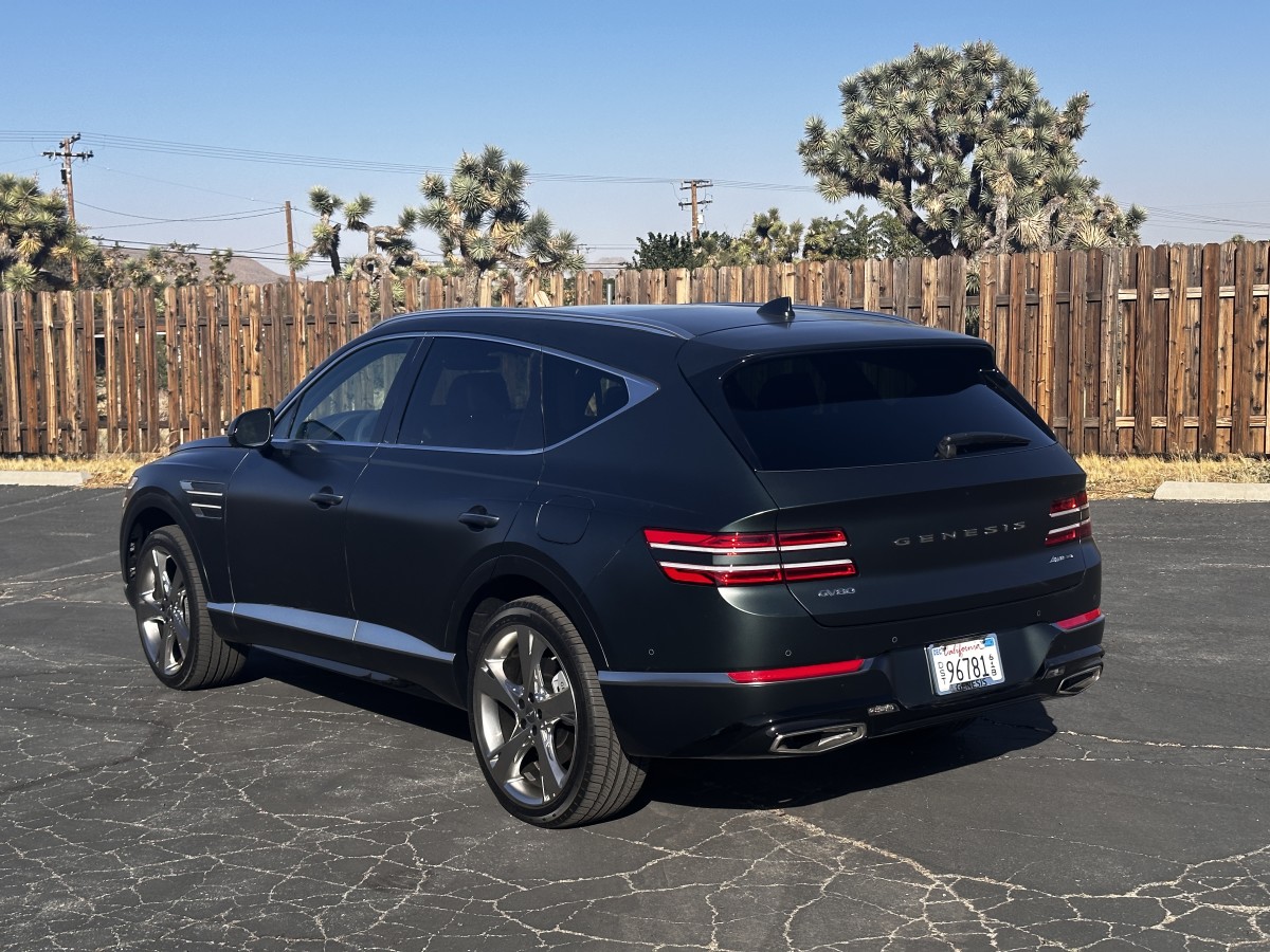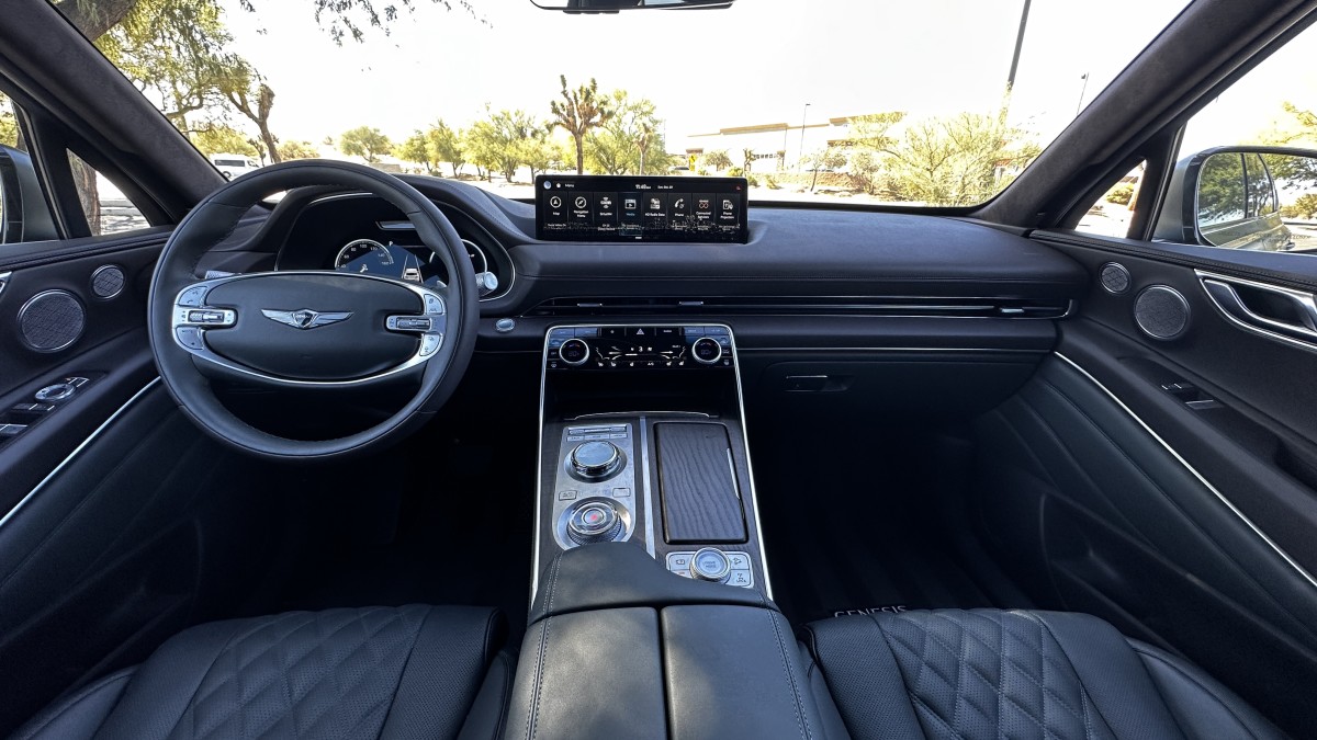 The quad lamp look is echoed in the rear in the four-part taillamps above the dual exhaust. The hands-free liftgate is pretty boxy—no coupe styling here, though that’s on the way in the recently announced GV80 Coupe—but the SUV doesn’t suffer for it. In fact, our tester’s matte Brunswick Green paint job gives it quite an elegant look.