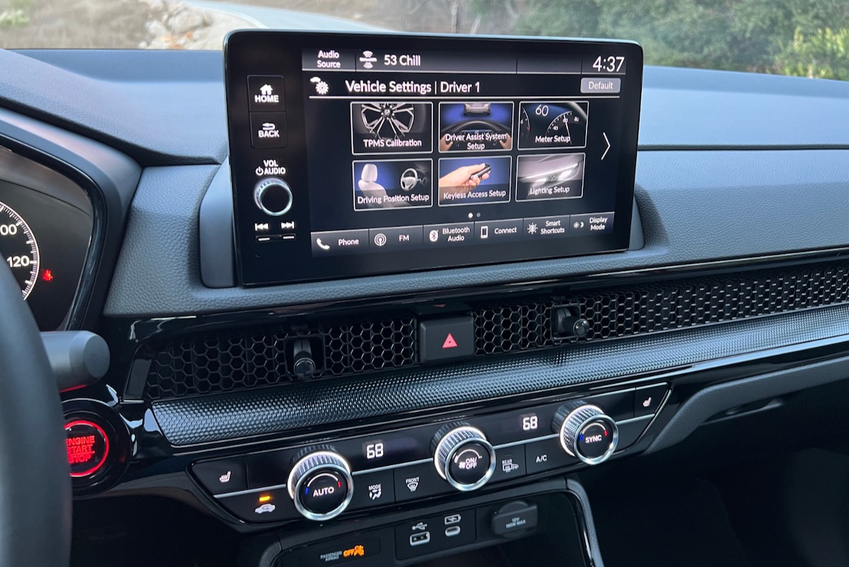 Honda bundles the tech under the Honda Sensing umbrella, and it includes the collision warning and avoidance features you’ve come to expect as standard equipment. In other words, you get adaptive cruise control with stop-and-go capability, forward-collision warning, automatic emergency braking, lane-departure warning, lane-keeping assist, lane-centring assist, and automatic high-beam headlights. Honda also includes blind-spot monitoring and rear cross-traffic alert, though a B series of trims has been added in Canada partway through the model year that omit these features due to the ongoing semiconductor shortage. New features include a seatbelt reminder system, rear-seat reminder system, driver monitoring system, and traffic sign recognition system.