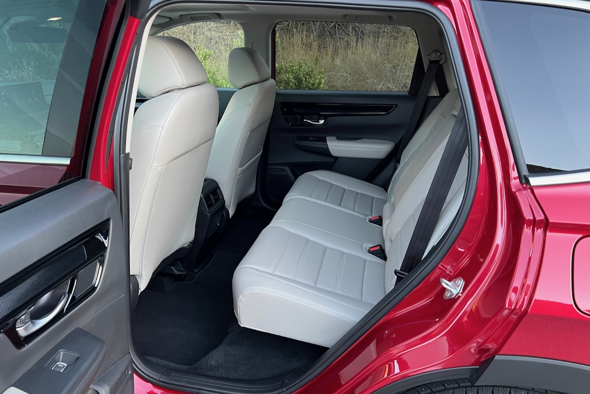 Honda claims the new CR-V is the roomiest one yet, but it doesn’t feel that way from the power-adjustable driver’s seat, which adjusts six ways as standard and 10 ways in upper trims. You sit relatively low behind the steering wheel, so the CR-V feels more like a car than a high-riding SUV. Outward visibility is excellent, and the redesigned seats cradle you in comfort. Heated front seats and dual-zone climate control are standard equipment; heated rear seats are offered on the EX-L and Touring Hybrid trims. Ventilated seats are not available.